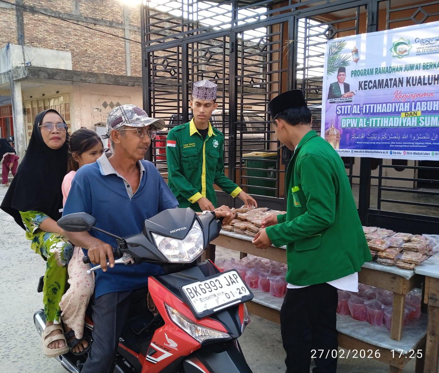 Labuhanbatu Utara – STIT Al-Ittihadiyah Labuhanbatu Utara melaksanakan kegiatan sosial bertajuk Ramadan Jum’at Berkah dengan membagikan takjil kepada masyarakat pada Jumat (27/2/2026). Kegiatan ini menjadi penanda dimulainya rangkaian program berbagi takjil yang rutin digelar setiap Jumat selama bulan suci Ramadan.